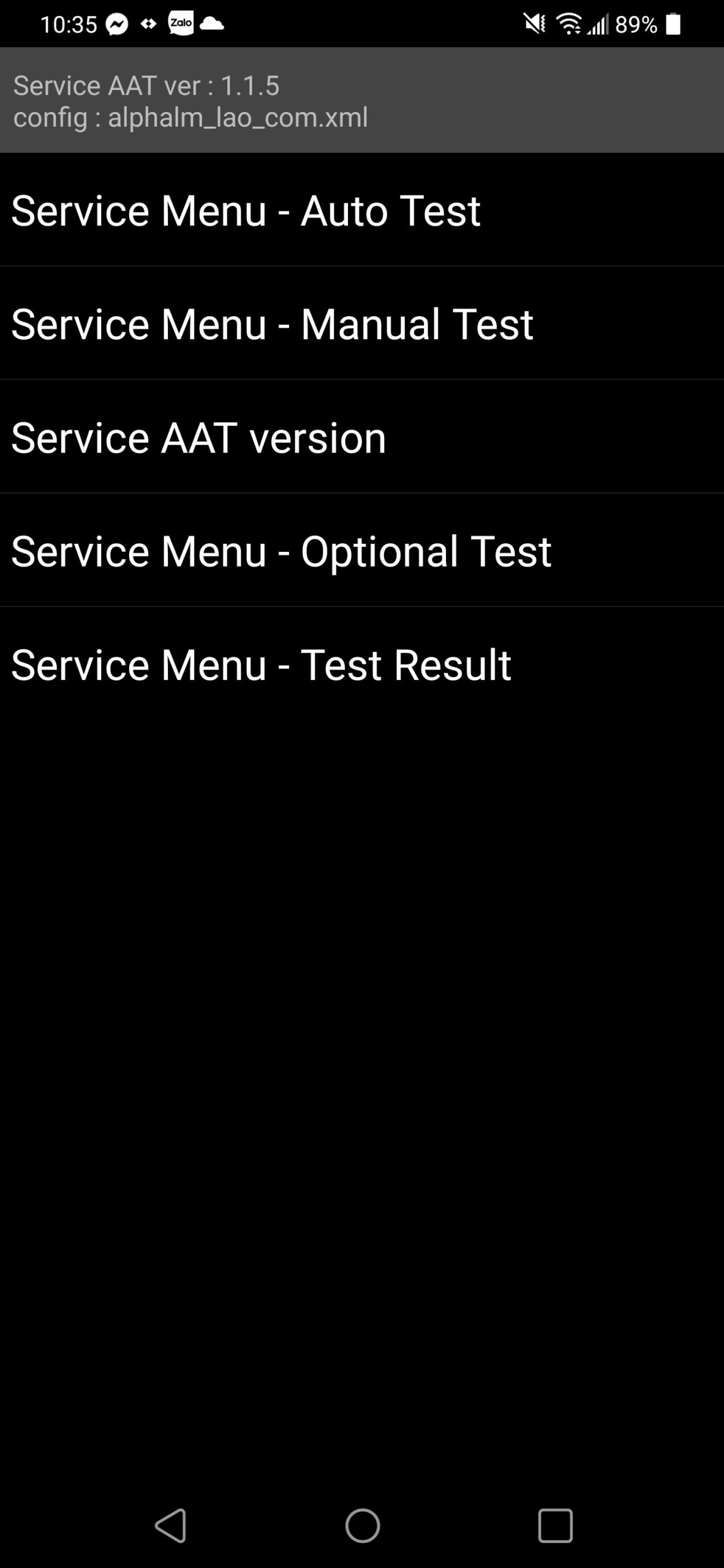 Tiếp tục Device Test > SAAT > Service Menu – Manual test > Optical Fingerprint test và khi vòng tròn màu xanh lá cây hiển thị hãy chạm vào nó, ( đang lấy hình tạm G8 nên không có dòng Optical Fingetprint test )